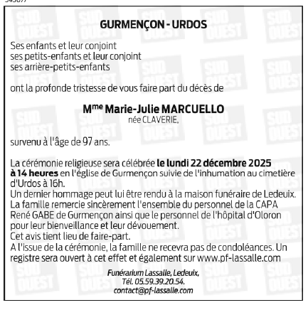 Déroulement des funérailles de Madame Marie MARCUELLO