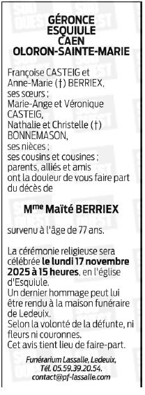 Déroulement des funérailles de Madame Marie-Thérèse BERRIEX