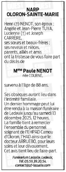 Déroulement des funérailles de Madame Paule NENOT