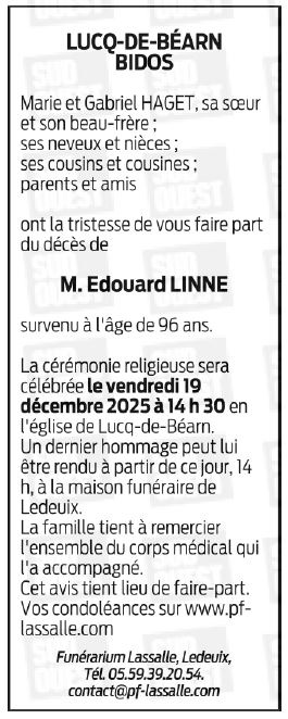 Déroulement des funérailles de Monsieur Edouard LINNE