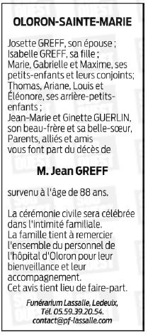 Cette page vous permet de présenter vos condoléances à la famille et de partager l'avis de décès de Jean.