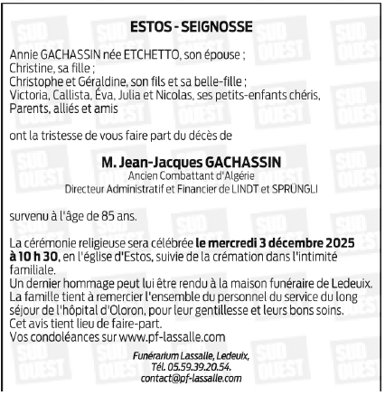 Déroulement des funérailles de Monsieur Jean-Jacques GACHASSIN