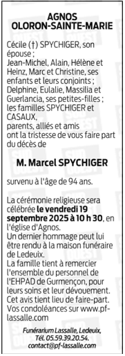 Déroulement des funérailles de Monsieur Marcel SPYCHIGER